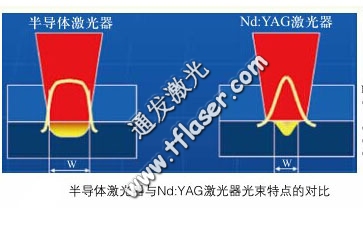 從上圖我們可以看出半導體激光器在焦點前后的光束發散明顯小于YAG激光器。
